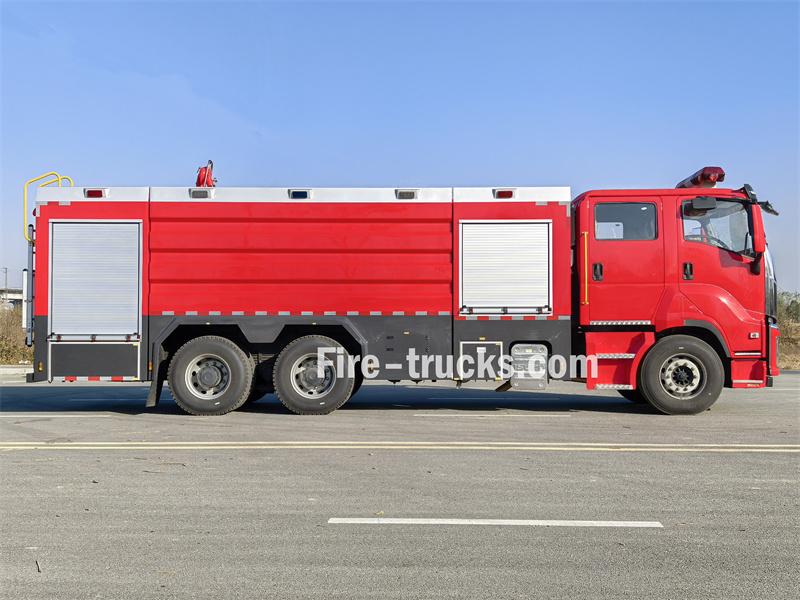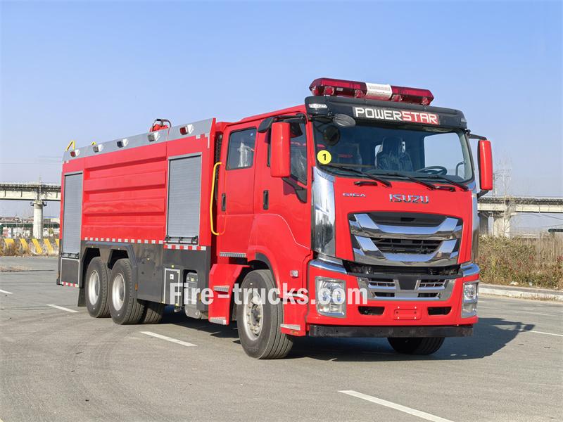 O caminhão de bombeiros Isuzu GIGA 6X4 com capacidade para 10 metros cúbicos de espuma é baseado no chassi do Isuzu GIGA 6X4, com peso bruto total de 35 toneladas e distância entre eixos de 4800+1370 mm. É equipado com um motor Isuzu 6WG1-TCG62 de 520 hp e uma transmissão Fast de 12 velocidades. A parte frontal da superestrutura abriga o compartimento de equipamentos, a seção central contém um tanque de água de aço carbono de 8000 litros e um tanque de espuma de aço inoxidável de 2000 litros, e a parte traseira é a sala de bombas, equipada com uma bomba de incêndio CB10/140-XZ, painel de controle, mangueiras de incêndio, equipamentos de combate a incêndio, etc. Um canhão monitor de incêndio PL8/64 está localizado no teto.