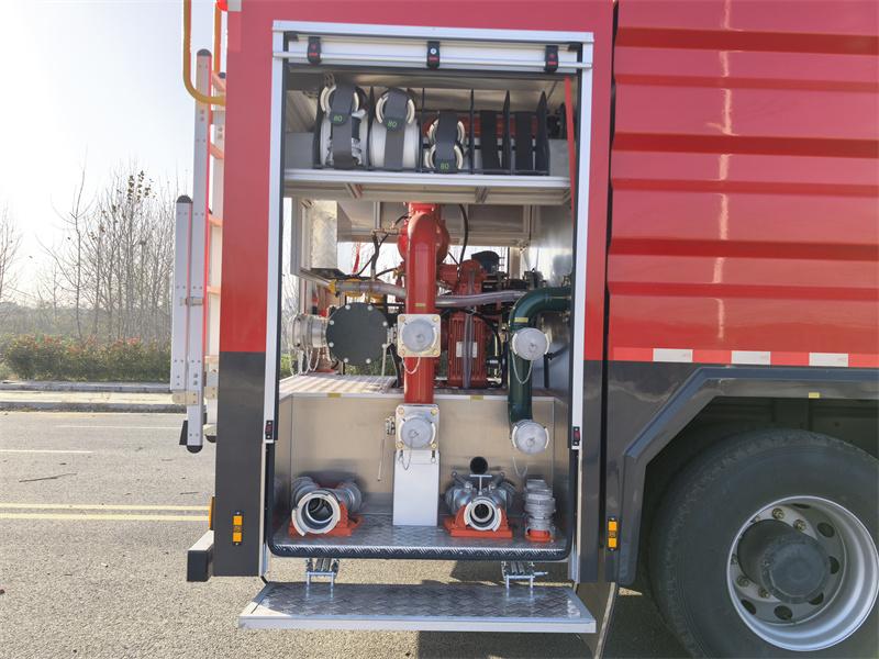 Uma bomba de incêndio CB10/140-XZ com vazão nominal de 100 L/s a 1 MPa está instalada na sala de bombas na parte traseira do veículo. Esta bomba de incêndio é confiável e pode fornecer forte pressão de água, garantindo que as mangueiras de incêndio possam lançar água ou espuma em alta pressão a longas distâncias para o combate a incêndios.