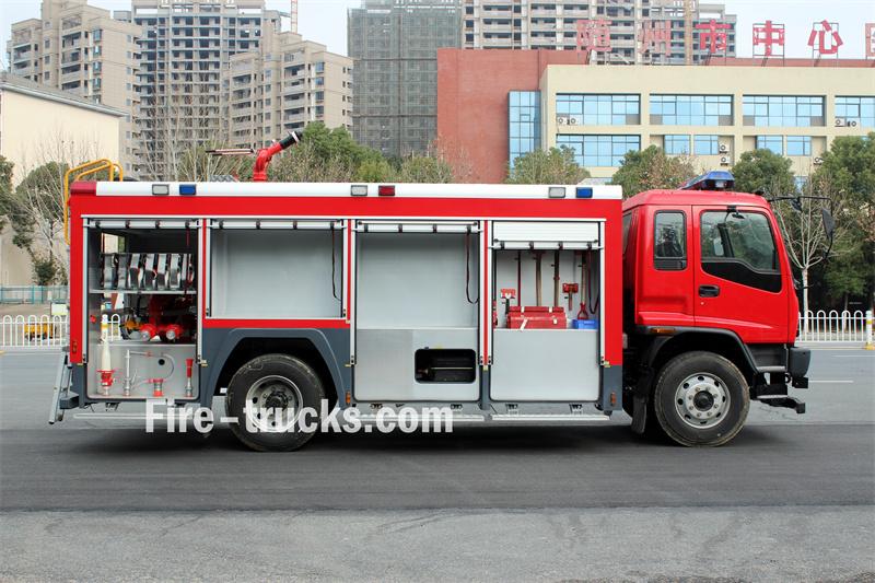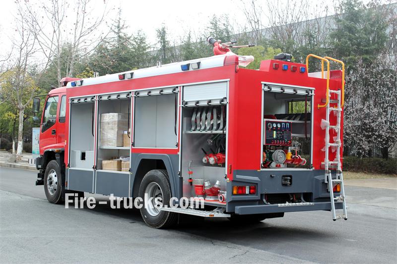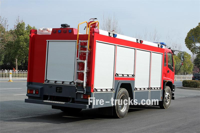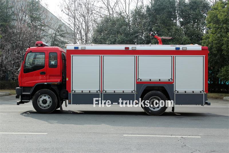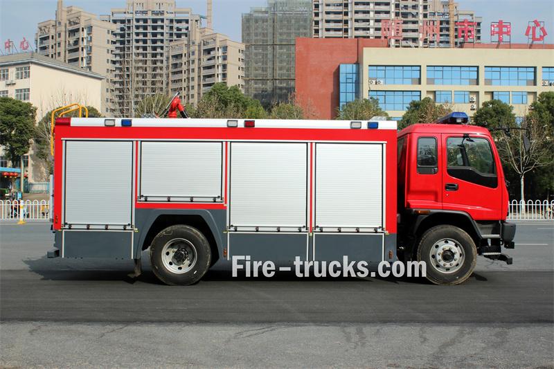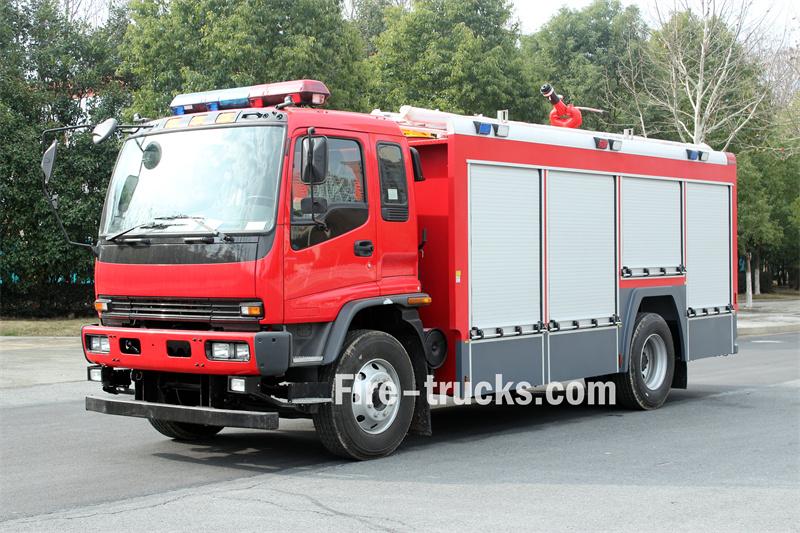 Water≥70 m,Foam≥60mEsse Caminhão de bombeiros com motor Isuzu FVR 6HK1 da Albânia É um caminhão de bombeiros de médio porte, construído sobre o chassi Isuzu FVR 4×2. Equipado com um motor 6HK1 e uma caixa de câmbio Fast, garante potência confiável. Um tanque de água de 5 metros cúbicos e um tanque de espuma de 1 metro cúbico atendem às diversas necessidades de combate a incêndios. Integra uma bomba de incêndio CB10/60 de alta vazão, um canhão monitor PL8/48 de longo alcance e ângulo ajustável para direcionamento preciso das fontes de incêndio, mangueiras de incêndio e outros equipamentos auxiliares de combate a incêndios, além de diversos equipamentos de arrombamento e resgate no compartimento de equipamentos, proporcionando forte suporte para operações de resgate.