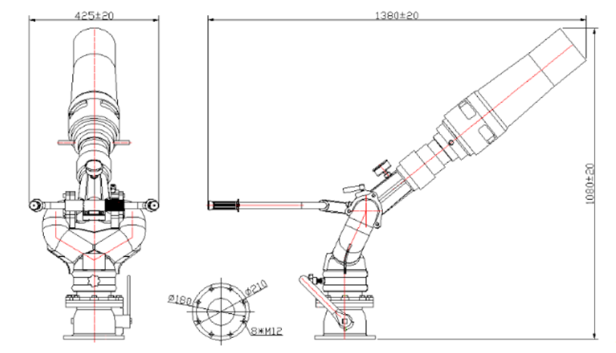 | Modelo de monitor de incêndio | Fluxo | Faixa | Pressão nominal | Rotação de inclinação | Rotação horizontal | Peso |