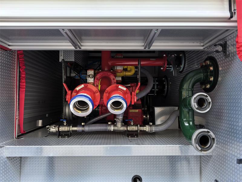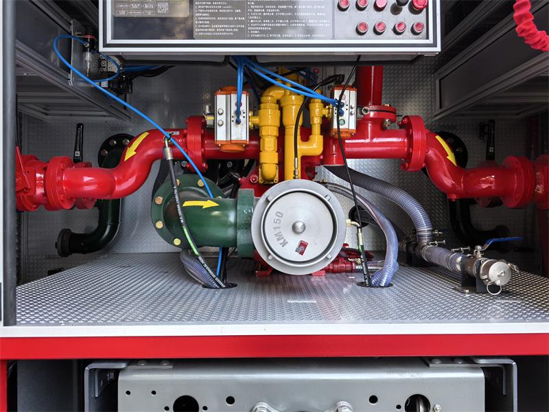 A casa de bombas traseira está equipada com uma bomba de incêndio CB10/60-RS e um painel de controle. Um canhão monitor de incêndio PL8/48 está montado no teto, oferecendo longo alcance, ampla cobertura e ângulo ajustável. Este caminhão de bombeiros integra funções de combate a incêndio e resgate, sendo particularmente eficaz no combate a incêndios de Classe B, como incêndios em instalações de petróleo, tornando-se um equipamento essencial para garantir a segurança urbana e industrial.