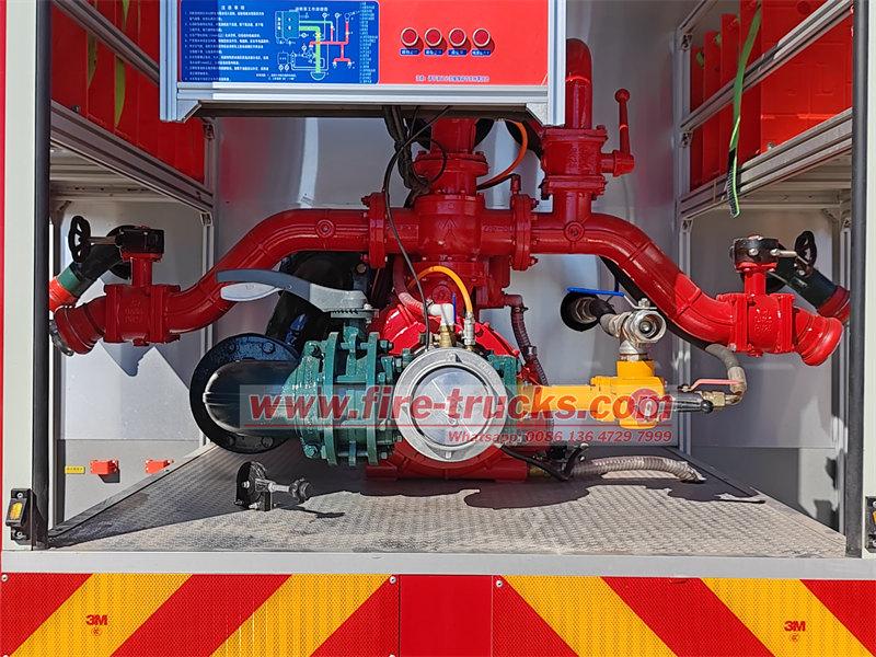 A capacidade do tanque de água e do tanque de espuma é personalizada, o tanque de pó seco é opcional