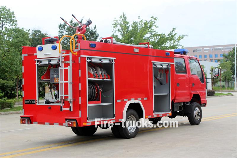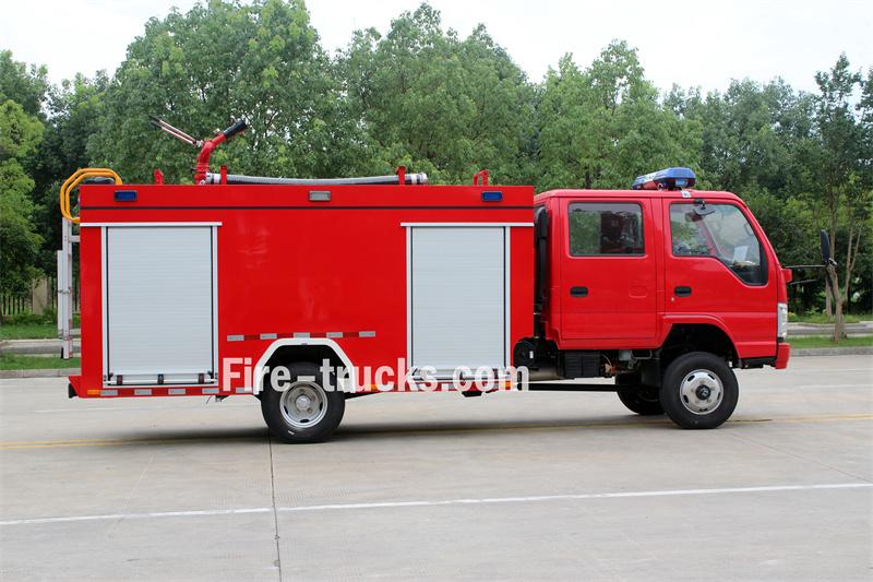 Este caminhão-tanque de bombeiros Isuzu de 3 m³ é baseado em um chassi Isuzu 100P 4x4 de cabine dupla com distância entre eixos de 3360 mm. Ele é equipado com um motor Isuzu 4KB1-TCG60 e uma caixa de câmbio MSB de 5 velocidades. A parte frontal da superestrutura abriga o compartimento de equipamentos, a seção central contém um tanque de água de aço carbono de 300 litros e a parte traseira é a sala de bombas, equipada com uma bomba de incêndio CB10/60-XZ, painel de controle, mangueiras de incêndio, equipamentos de combate a incêndio, etc. Um canhão monitor de incêndio PS8/30W está montado no teto.