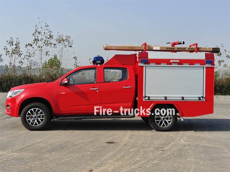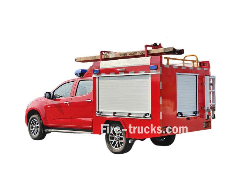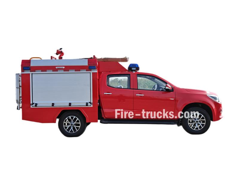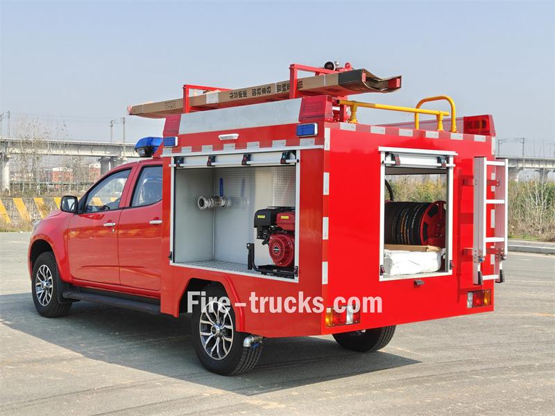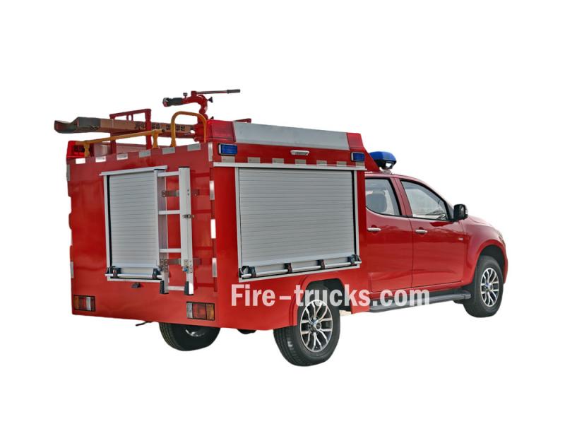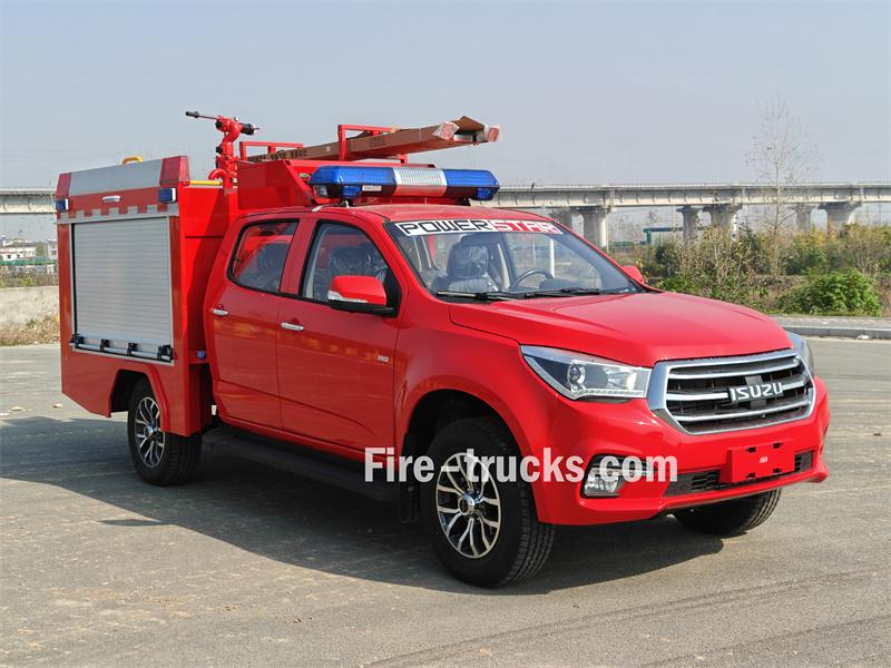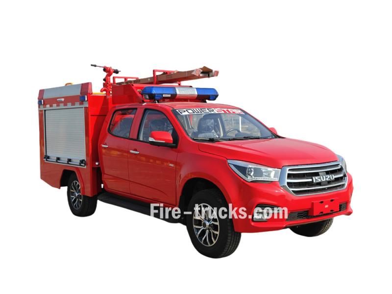 ≥50 mEsse Caminhão de bombeiros Isuzu de pequeno porte com capacidade para 500 litros de espuma É uma modificação do chassi da picape Isuzu Taga de cabine dupla. Integra um tanque de água de 500 litros e um tanque de espuma de 100 litros, e está equipado com um canhão monitor de incêndio montado no teto, uma bomba portátil e um carretel de mangueira elétrico, permitindo tanto o combate a incêndios de longo alcance quanto o combate a incêndios de curto alcance.