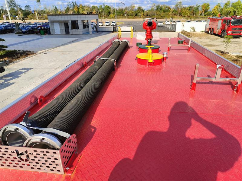 O canhão monitor de incêndio PL8/48, montado no topo, oferece longo alcance e ampla cobertura, permitindo pulverização precisa a longa distância. Com capacidade total de 10 metros cúbicos de líquido, combina um alto fluxo de água com eficientes capacidades de extinção por espuma, tornando-se um equipamento essencial para o combate a incêndios industriais, em minas e em instalações petrolíferas.