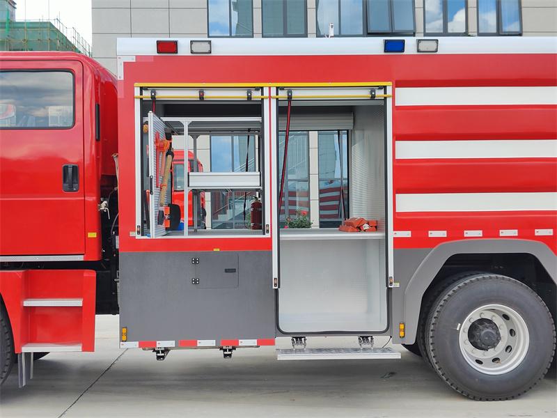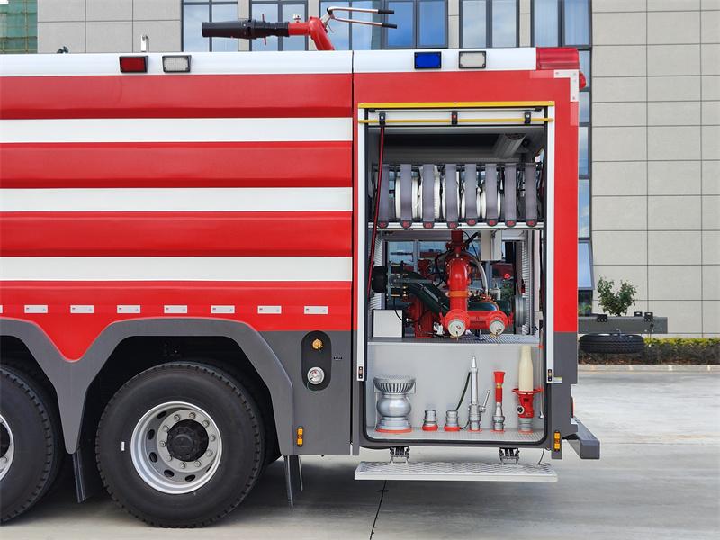 1. Sala de Equipamentos da Frente: Localizado atrás da cabine do motorista, equipado com uma porta de enrolar em liga de alumínio, utilizado para armazenar diversos equipamentos convencionais de combate a incêndio e equipamentos de proteção individual (como pás de incêndio, picaretas, machados, chaves inglesas e outras ferramentas de demolição, coletores de mangueiras, etc.).