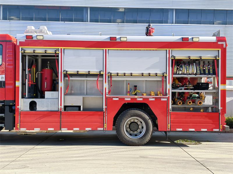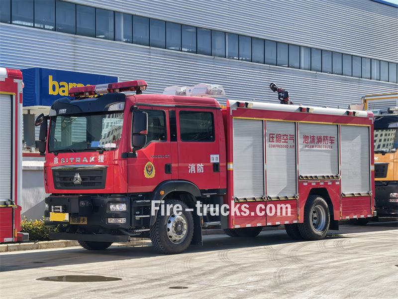 O caminhão de resgate e combate a incêndio Sinotruk 6 CBM CAFS é uma modificação do chassi Sinotruk C5H, com uma distância entre eixos de 4700 mm. Ele é equipado com um motor Sinotruk MC07H.35-60, uma caixa de câmbio Fast de 8 velocidades e possui um tanque de água de 5 metros cúbicos, um tanque de espuma tipo A de 350 kg e um tanque de espuma tipo B de 550 kg. O veículo conta com uma bomba de incêndio de alto desempenho, canhão monitor de incêndio e sistema CAFS, sendo de fácil operação. Este veículo pode ser utilizado para diversas funções de resgate em emergências, como combate a incêndio, reconhecimento, demolição, resgate, iluminação e proteção.