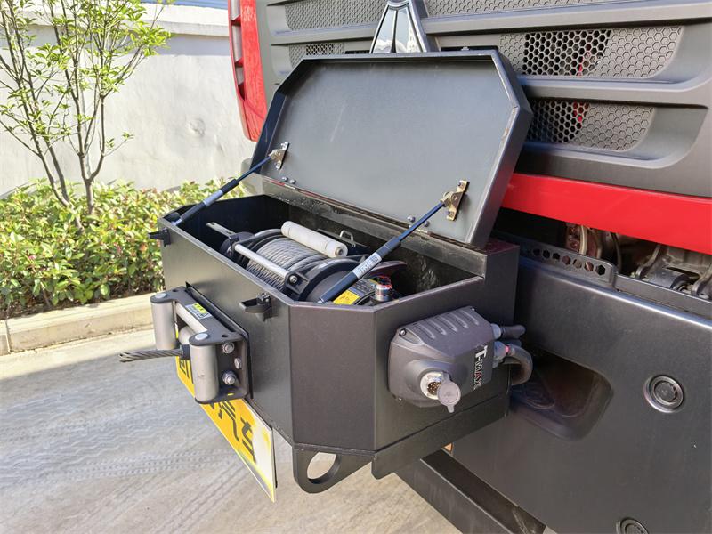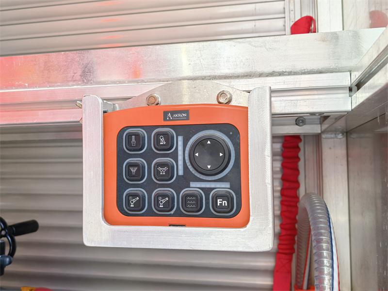 Painel de controle: O sistema inclui instruções de operação integradas, precauções, diagramas estruturais dos tanques tipo A e tipo B e dos reservatórios de água, um sistema de controle abrangente para caminhões de bombeiros, luzes de advertência, acelerador eletrônico, botão de parada/partida do motor, botão de reinicialização, botão de abastecimento de água, botão de controle tipo A, botão de controle tipo B, interruptores de iluminação, interruptor de alimentação principal, botão de parada de emergência e outros botões.