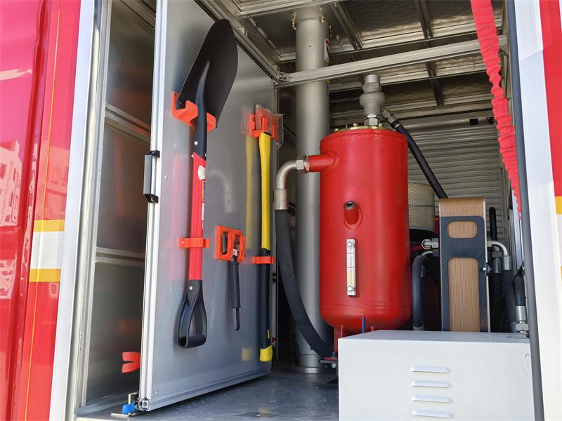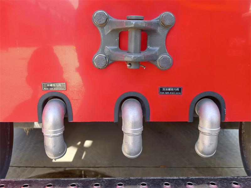Sistema de Tanque : Tanque de água de aço carbono de 5 metros cúbicos, com capacidade total de 900 kg de espuma líquida de aço inoxidável (350 kg de espuma tipo A e 550 kg de espuma tipo B), atendendo às necessidades de extinção de incêndios de alta intensidade a longo prazo.